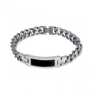 Stainless Steel Bracelet with black Enamel & cz on plate
