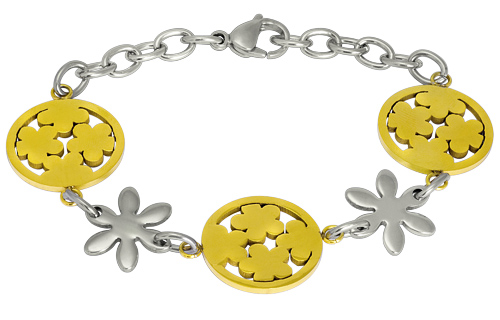 Stainless Steel Bracelet IPG two tone flower shape