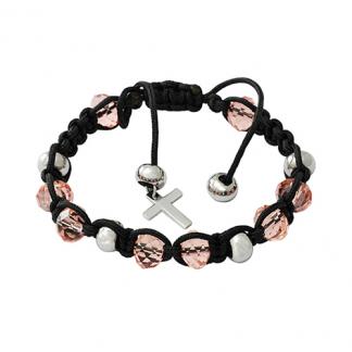 Stainless Steel Bracelet 4 round balls with cotton string & Stones in different colors with hanging cross