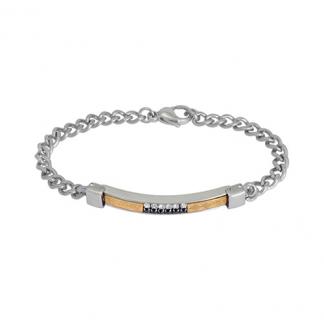 Stainless Steel Bracelet IP Rose two tone with black & white cz