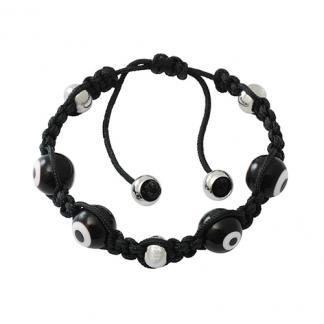 Stainless Steel Bracelet 4 eyes balls with round links & cotton string in different colors