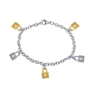 Stainless Steel Bracelet with 5 Key Lock Charms In IPG two tone