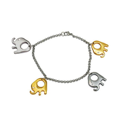 Stainless Steel Bracelet IPG two tone hanging charms (elephant shape)