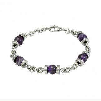 Stainless Steel Bracelet With 5pcs Amethayst Stone