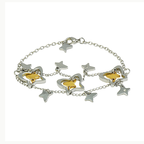 Stainless Steel Bracelet IPG two tone with 4pcs cz
