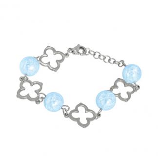 Stainless Steel Bracelet 4pcs flower & 4pcs blue crystal