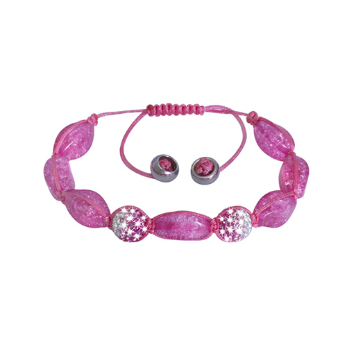 Stainless Steel Bracelet With 2pcs purple & white crystal ball with cz With purple oval shape crystal With stainless steel