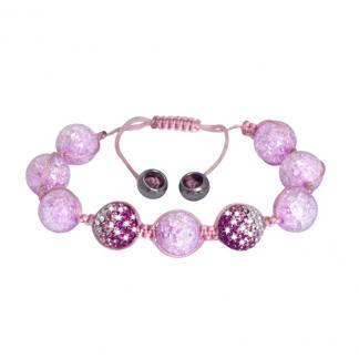 Stainless Steel Bracelet With 2 crystal ball with cz in outer dia. 12mm And 6 pink crystal ball in outer dia. 12mm