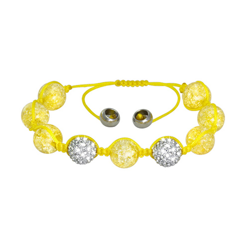 Stainless Steel Bracelet With 2 white crystal balls with cz in Outer dia. 12mm and with yellow crystal balls in 12mm