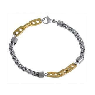 Stainless steel bracelet 2 style chains in one bracelet in IPG two tone