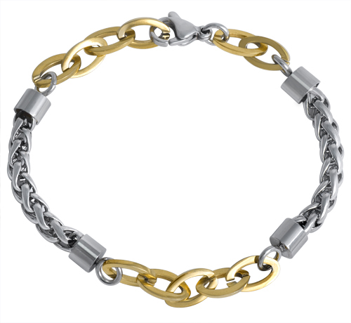 Stainless steel bracelet 2 style chains in one bracelet in IPG two tone
