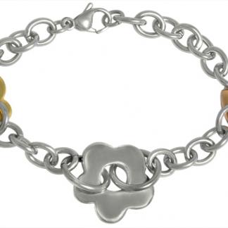 Stainless steel bracelet in IP Rose and IPG 3 tone with flower and heart