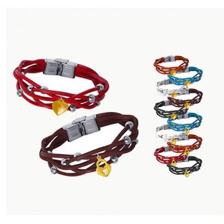 Stainless steel bracelet 5pcs Leather in one pc with 8pcs stainless steel Balls and 1 IPG heart OR LOCK