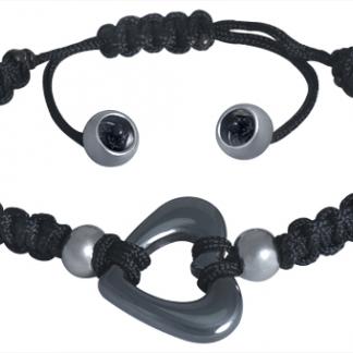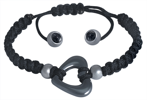 Stainless steel bracelet With one Hematite heart in centre With stainless steel beads