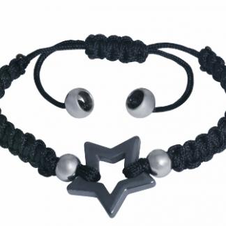 Stainless steel bracelet With one Hematite HOLLOW STAR in centre With stainless steel beads
