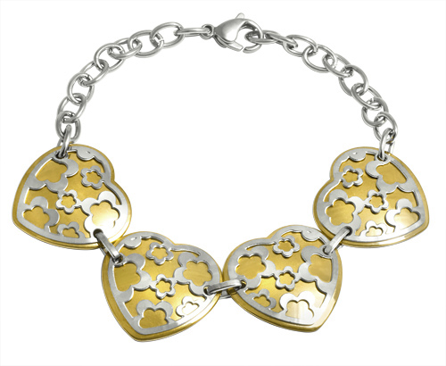 Stainless Steel Bracelet IN IPG 2 TONE WITH 4 PCS OF HEART