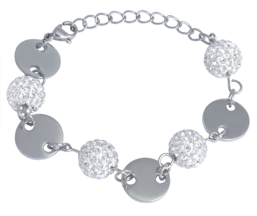 Stainless Steel Bracelet WITH 4PCS OF CZ BALLS AND 4PCS OF STAINLESS STEEL CIRCLE