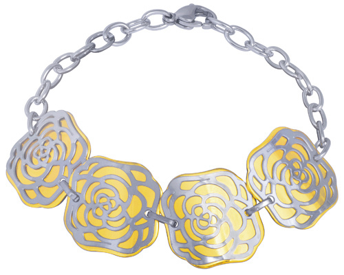 Stainless Steel Bracelet IN IPG 2 TONE WITH 4PCS OF FLOWER