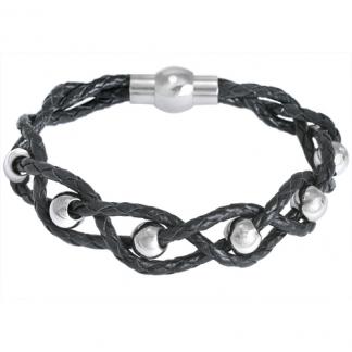 Stainless Steel Bracelet IN LEATHER WITH 6 PCS OF S/S BALLS
