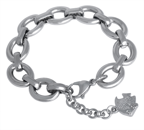 Stainless Steel Bracelet IN S/S COLOR WITH 7 LINKS AND 1 FISH CHARM