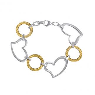 Stainless Steel Bracelet IN IPG 2 TONE IN 3 IPG CIRCLES AND 3 S/S HEARTS