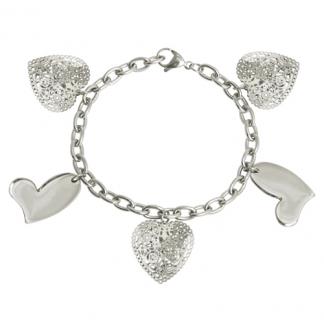 Stainless Steel Bracelet IN ALL S/S COLOR WITH 5 PCS OF HEARTS WITH CZ