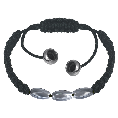 Stainless Steel Bracelet Three Oval Hematite (HEMETAIT) Beads with cotton string