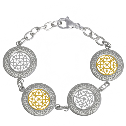 Stainless Steel Bracelet WITH 4 CIRCLES WITH CUT OUT IN IPG TWO TONE
