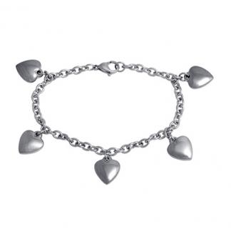 Stainless Steel Bracelet WITH 5 HEART CHARMS ALL IN STEEL COLOR