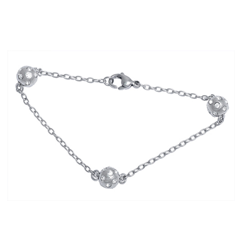Stainless Steel Bracelet WITH 3 CZ BALL ALL IN STEEL COLOR