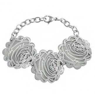 Stainless Steel Bracelet WITH 3 ROSE FLOWER POLISH & SATIN ALL IN STEEL COLOR