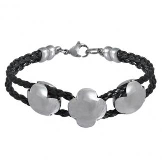 Stainless Steel Bracelet WITH PU WITH THREE FLOWER SHAPE PIECE