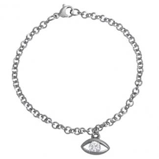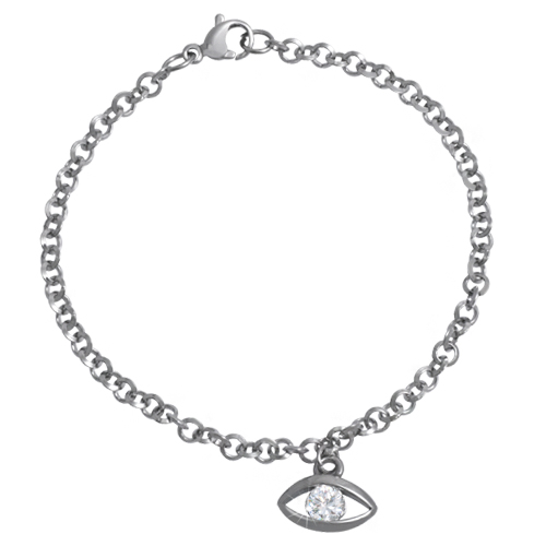 Stainless Steel Bracelet WITH EVIL EYE SHAPE CHARM WITH CZ ALL IN STEEL COLOR