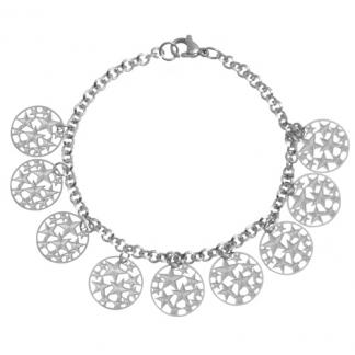 Stainless Steel Bracelet WITH 9 CIRCLE CHARM WITH STAR PATTERN ALL IN STEEL COLOR