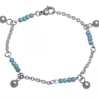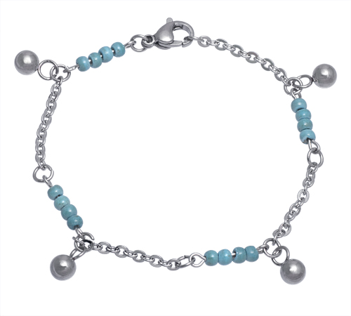 Stainless Steel Bracelet WITH 4 BEAD WITH 4 SETS OF TURQUOISE STONE