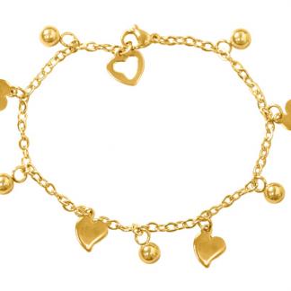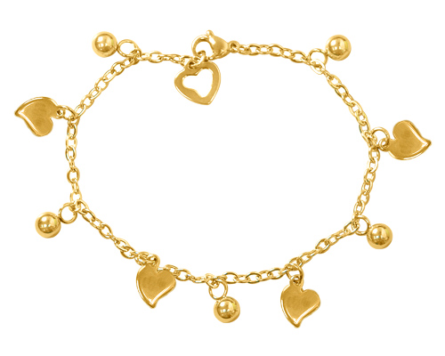 Stainless Steel Bracelet WITH 4 HEART & 5 S/S BEADS AND 1 HEART CHARMALL IN IPG