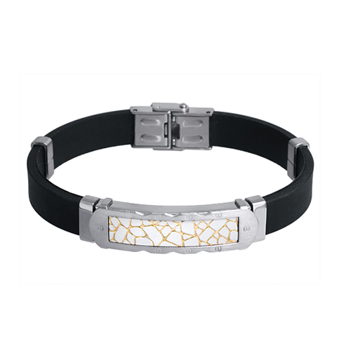 Stainless Steel Bracelet WITH WHITE LEATHER AT CENTRE PLATE WITH IPG COLOR WITH SCREW PATTERN