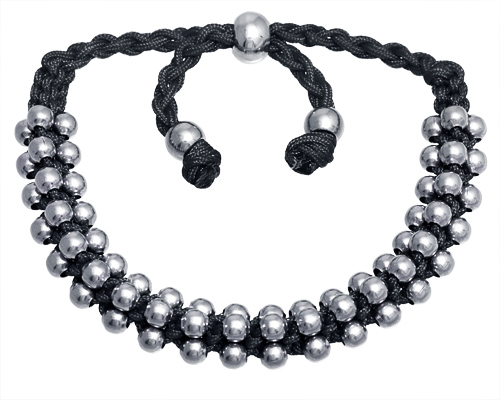 Stainless Steel Bracelet WITH S/S BEADS WITH COTTON STRING (BLACK/BLUE/YELLOW/RED)