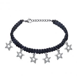 Stainless Steel Bracelet SHAMBALLA BRACELET WITH BLACK COTTON STRING WITH 6 STAR CHARM