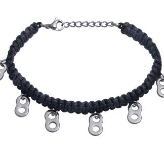Stainless Steel Bracelet WITH BLACK COTTON STRING WITH 6 ?EIGHT? SHAPE / INFINITY SIGN CHARM