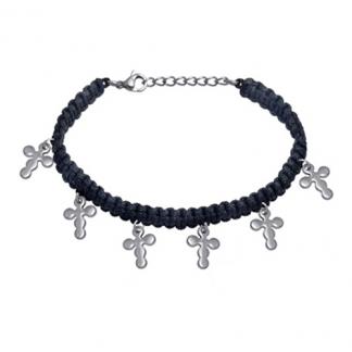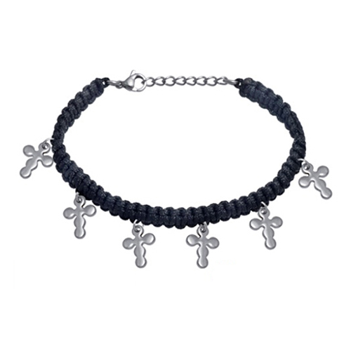 STAINLESS STEEL SHAMBALLA BRACELET WITH BLACK COTTON STRING WITH 6 CROSS CHARM