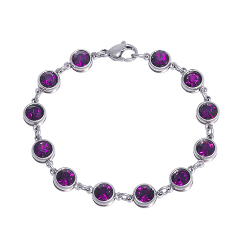 STAINLESS STEEL BRACELET WITH 12 CRYSTAL IN PURPLE COLOR