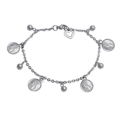 STAINLESS STEEL BRACELET WITH 4 VIRGIN MARY CHARM WITH 5 STAINLESS STEEL BEAD ALL IN STEEL COLOR