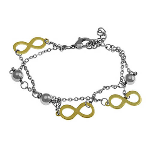 STAINLESS STEEL BRACELET WITH 3 INFINITY CHARMS IN IPG COLOR WITH 3 S/S BEADS