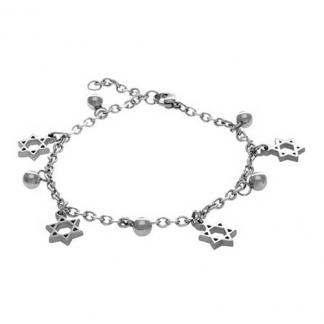 STAINLESS STEEL BRACELET WITH 5 S/S BEADS WITH 4 STARS ALL IN STEEL COLOR