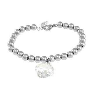 STAINLESS STEEL BRACELET WITH S/S BEADS WITH SWAROVSKI CRYSTAL IN DIAMOND SHAPE ALL IN STEEL COLOR