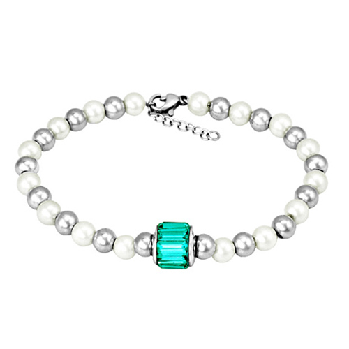 STAINLESS STEEL PEARL BRACELET WITH PEARL COLOR BEADS WITH S/S BEADS WITH STAINLESS STEEL PENDANT WITH SWAROVSKI CRYSTAL