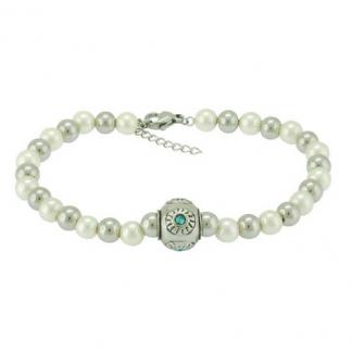 STAINLESS STEEL PEARL BRACELET WITH PEARL COLOR BEADS WITH S/S BEADS WITH STAINLESS STEEL PENDANT WITH CZ