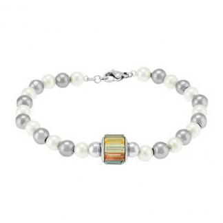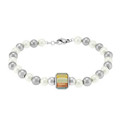 STAINLESS STEEL PEARL BRACELET WITH PEARL COLOR BEADS WITH S/S BEADS WITH AMETHYST BEADS WITH STAINLESS STEEL PENDANT WITH SWAROVSKI CRYSTAL