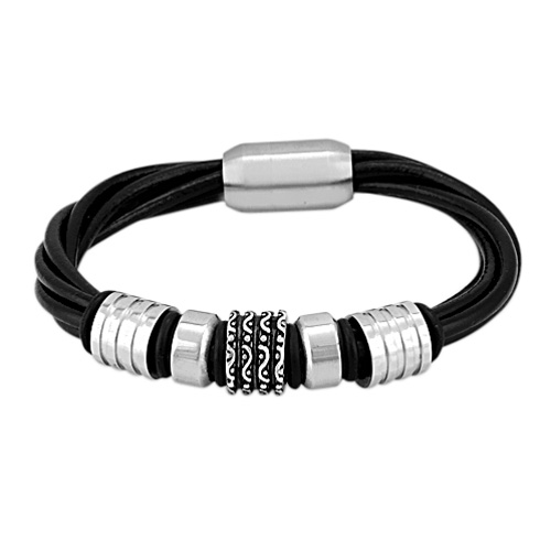 STAINLESS STEEL BRACELET IN PU WITH MAGNET LOCK WITH S/S BEADS